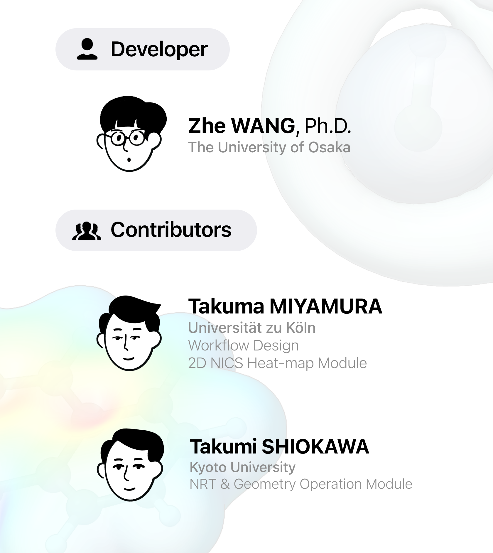 - Zhe Wang, py.Aroma: An Intuitive Graphical User Interface for Diverse Aromaticity Analyses, Chemistry, 2024, 6, (6), 1692-1703. DOI: 10.3390/chemistry6060103